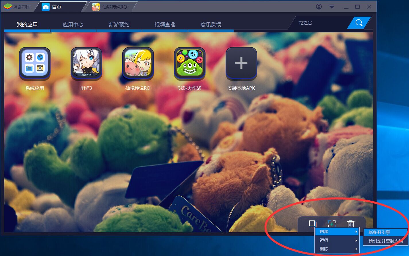 方法一:點擊“我的應(yīng)用”中RO右上角三角圖標(biāo),選擇“多開”,每需要新多開一個游戲就可以直接點擊最下面的“新多開引擎”,如圖3;