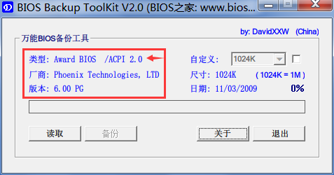 2、打開工具后,在紅框的位置能夠顯示BIOS類型和廠商信息,如果沒有顯示,點一下讀取按鈕。