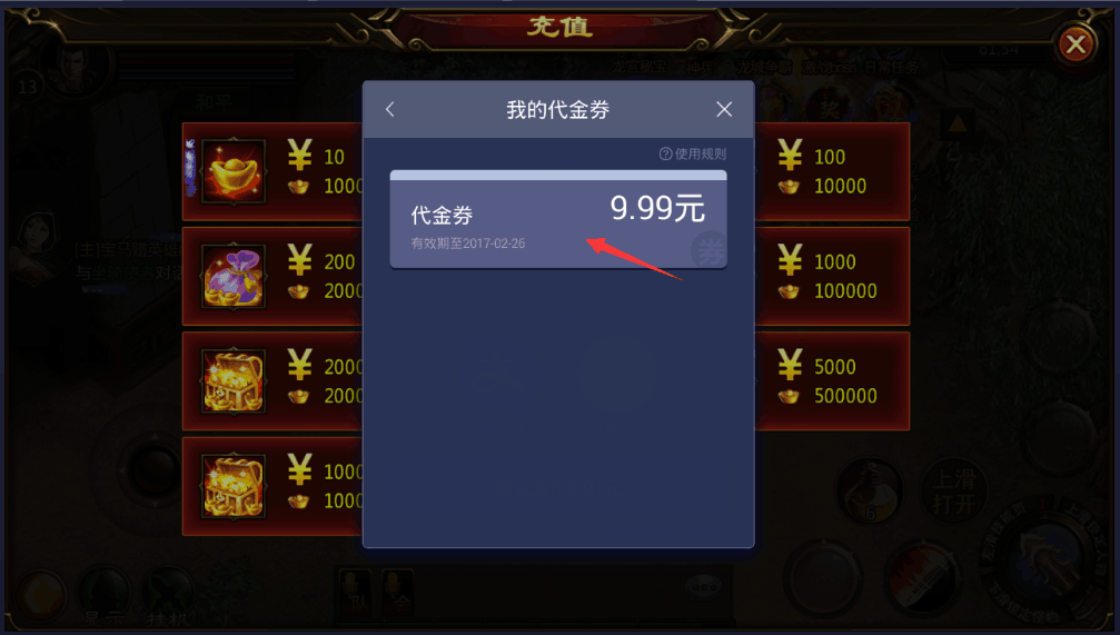 三、如充值金額大于代金券金額,將會支付多出金額數(shù)量;如充值金額小于代金券金額,則以實際消費金額為主(PS:支付金額為1元,代金券為10元,則直接抵扣且該張代金券面值不會有余額。);代金券不可疊加使用,每筆只可能使用一張代金券。