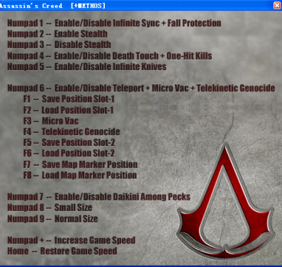 刺客信條是一款很不錯(cuò)的動(dòng)作冒險(xiǎn)類游戲,在全世界范圍內(nèi)有很多忠實(shí)的擁躉。玩家將扮演的一位身懷絕藝的刺客,懲惡揚(yáng)善,劫富濟(jì)貧,為救無(wú)辜百姓而努力。這款游戲可以圓你的大俠夢(mèng)哦,呵呵,今天給大家?guī)?lái)一款游戲修改器,這款修改器添加了無(wú)限飛到以及一擊必殺的功能,幫助玩家輕輕松松度過(guò)難關(guān)。