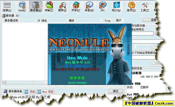 Neo Mule,作者為德國人David Xanatos,適用于所有eMule用戶,特別是上傳者與LowID用戶.此Mod有著最詳細(xì)的設(shè)置內(nèi)容和許多有用的輔助功能,包括Voodoo等特有功能.對上傳、下載文件的細(xì)節(jié)處理也比較人性化,提供了多種設(shè)置.除此之外屏蔽吸血騾的Argos功能也是所有Mod中最完善的.因此推薦一用.