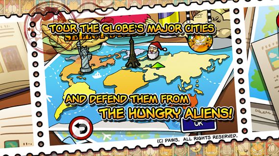 加菲貓總動員2食品侵略者之反擊是一款以加菲貓為題材打造的休閑動作手游,玩家將和加菲貓一起來抵御外星人的侵略,這是一場為食物而引發(fā)的戰(zhàn)爭,那么就來用食物終結它。