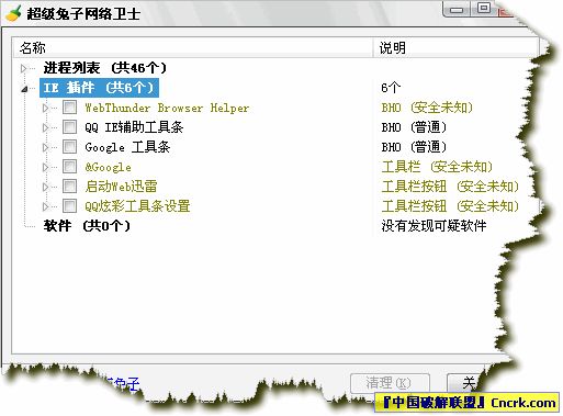 ·一步清除進程、插件、軟件,大多數(shù)都可在正常模式下一次清理完畢。