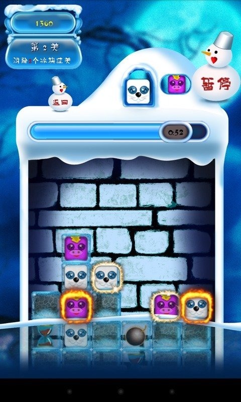 規(guī)定時(shí)間內(nèi),通過一定的規(guī)則震破更多的冰獲得更高的分?jǐn)?shù)。3個(gè)同種顏色的動(dòng)物相連就可以消除周圍的冰塊,消除所有水面以上的冰塊就可以進(jìn)入下一關(guān)。隨著關(guān)卡遞增,難度也會(huì)遞增哦。不一樣的玩法,不一樣的挑戰(zhàn),趕緊邀請(qǐng)好友一起來破冰吧!