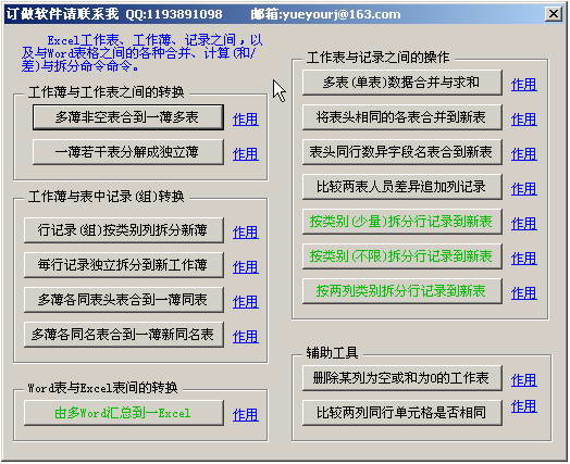 悅友Excel制表助手以插件形式安裝到Microsoft Office Excel的COM組件中,在菜單欄(Excel2003)或加載項(xiàng)(Excel2007和Excel2010)中增加“新增工具”菜單,使得Excel增加了如下十四大功能。
