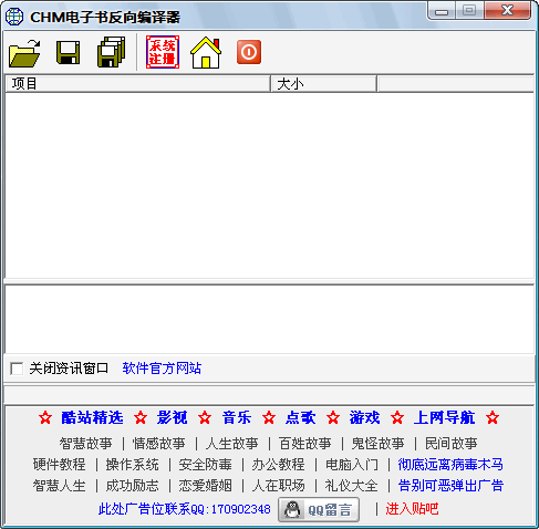 CHM電子書(shū)反向編譯器是一款專門(mén)用來(lái)反編譯CHM電子書(shū)源文件的工具軟件,可以迅速地釋放包括在CHM電子書(shū)里面的全部源文件(包括網(wǎng)頁(yè)、文本、圖片、CHM、ZIP、EXE等全部源文件),并且完美地恢復(fù)源文件的全部目錄結(jié)構(gòu)及文件名,以便幫助用戶得到源文件進(jìn)行資料恢復(fù)或二次編輯。提供多種反編譯方式供用戶選擇,您不妨下載試試