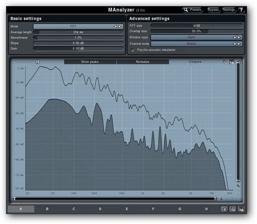 MAnalyzer是一款基于FFT的頻譜分析器,可以將音頻的頻率顯示為1/3八度或 FFT曲線上,讓你比較輕松比較和查看頻譜。