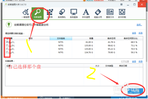 3、深度清理,對電腦硬盤產(chǎn)生的滯留垃圾清理