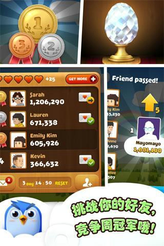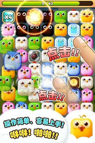 狂熱模式:同樣顏色的鳥達到3個以上就可以點擊消除,消除的數(shù)量越多就能形成各類的爆破鳥,得到的分數(shù)就越高。