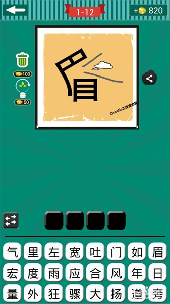 第六種文字加圖片的,文字顯然是很重要的,看懂圖片就是一個(gè)字,像圖中的“眉”是個(gè)關(guān)鍵字,旁邊的圖片是氣的意思,顯然成語(yǔ)是揚(yáng)眉吐氣。