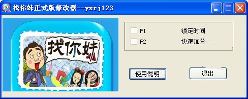 找你妹修改器是一款同名游戲的輔助工具,可以鎖定時間和快速加分的功能,是玩家的好作弊器哦。找你妹是一款休閑益智類游戲,這游戲可是現(xiàn)在非常流行的