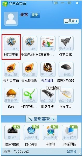 1、下載載并安裝簡單百寶箱,然后運行。在主界面上單擊“DNF百寶箱”: