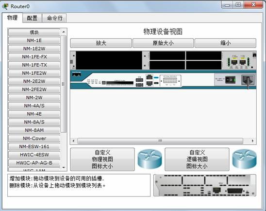 然后雙擊拓?fù)渲邢鄳?yīng)的設(shè)備給他插入模塊。我雙擊的是router0 彈出對(duì)應(yīng)窗口