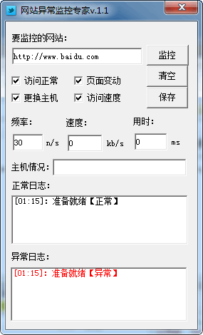 網(wǎng)站異常監(jiān)控專家 v1.1 中文綠色版 網(wǎng)站異常監(jiān)控專家可監(jiān)控站點是否正常訪問,出現(xiàn)錯誤時會加入提醒,可檢查下載速度,實時知道寬帶 是否不足,可計算訪問用時,知道從打開一個網(wǎng)頁到讀取完畢這段時間,可檢測域名解析是否變動,可監(jiān)控主頁是否遭到修改,支持設置監(jiān)控間隔,按照主機壓力而 來,有了它,可輕松掌握主機情況。