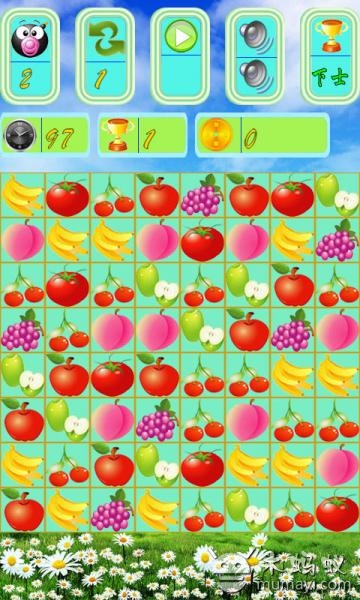 水果對對碰安卓游戲,當(dāng)三個或三個以上相同水果連成一橫線或豎線時(shí)就會消去并且得分。游戲難度適中,會記錄您的游戲級別以及得分情況,讓您充分體驗(yàn)游戲的樂趣!