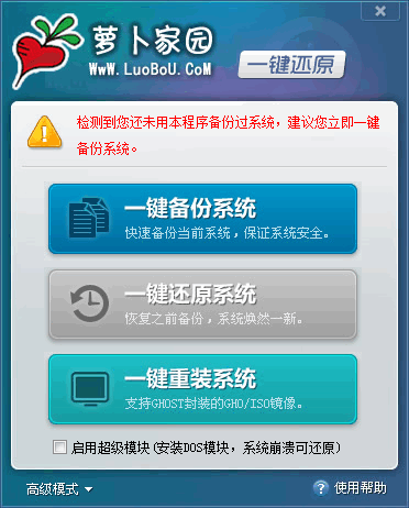 蘿卜家園一鍵還原系統(tǒng)是現(xiàn)在非常流行的一款系統(tǒng)還原工具,這款一鍵還原工具的界面清晰,操作簡(jiǎn)單,即使是新手也可以輕松上手,為了一防萬一,小編截了一組圖,用文字和圖片結(jié)合的方式教會(huì)大家使用這款軟件。