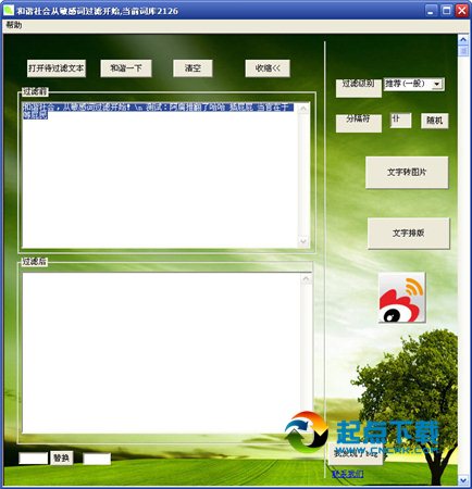 微博敏感詞過濾工具 1.1 綠色免費版 大家都知道新浪微博里面有很多詞語都被屏蔽了,那么我們在寫微博的時候怎么樣次啊能注意到詞語被屏蔽了呢,有了這個敏感詞工具就能知道哪些詞語被屏蔽了,寫微博就很方便了~