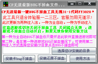第二種,是在第一種進(jìn)游戲BUG還掉血情況下,可使用第二種注入方式,選擇CF目錄點擊一鍵BUG不掉血即可。