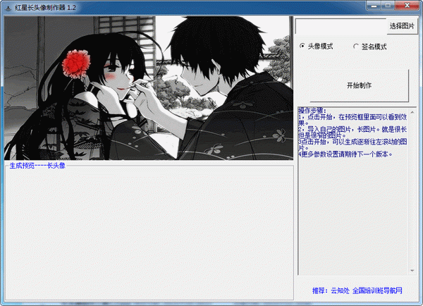 紅星長頭像制作工具是一個可以導(dǎo)入自己的圖片、長圖片,并生成逐漸往左滾動的圖片的綠色軟件,生成的滾動圖片可做QQ頭像來使用