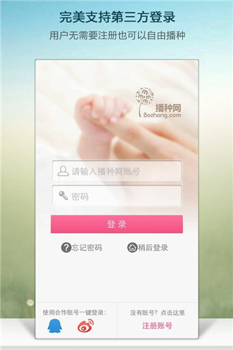 播種網(wǎng)是備孕、懷孕女性的網(wǎng)上家園。每天有上百萬的女性來到播種網(wǎng)交流討論,只為了一個共同的目標:擁有一個完全屬于自己的健康的小寶寶。播種網(wǎng)里有上百萬的愛心媽媽、婦產(chǎn)科專家以及各類達人,幫您輕松備孕、無憂生產(chǎn),快樂育兒。在這里,你不是一個人在戰(zhàn)斗! 讓我們一起以完善的準備來迎接生命中最感動的時刻!