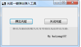 光驅(qū)一鍵彈出彈入工具是一款可以快速的操縱光驅(qū)的小工具,您只需要輕輕一鍵即可進(jìn)行光驅(qū)的彈出與關(guān)閉操作,主要是為您解決光驅(qū)因按鍵失靈而無法操作的情況,歡迎下載使用。