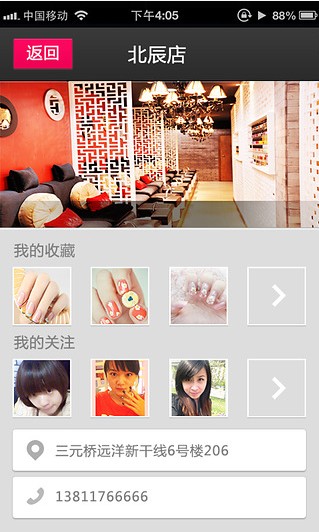 靚甲寶貝:可以為用戶顯示靚甲寶貝商家的所有店鋪和店鋪的詳情,包括店鋪內(nèi)的所有美甲類型和贊、踩、收藏,所有美甲師的資料和關(guān)注。顯示商家所有的近期的優(yōu)惠活動(dòng)??梢允褂抿v訊微博和新浪微博登錄個(gè)人中心查看自己收藏的美甲和美甲師,綁定手機(jī)號成為VIP會員可以查看消費(fèi)詳情和余額。