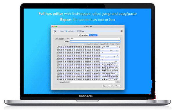 File Peek Mac版包含一個功能強(qiáng)大的十六進(jìn)制編輯器,易于使用。編輯一個字節(jié),或者根據(jù)需要編輯一個字節(jié)。需要編輯一個特定的偏移量?不用擔(dān)心,它也可以做到這一點(diǎn)。還包括完整的查找/替換功能并以文本或十六進(jìn)制格式導(dǎo)出。更改文件的創(chuàng)建日期和修改日期。有時候這些會變得混亂,并且沒有簡單的方法在Finder中更新它們。使用File Peek,使用圖形日歷或在日期中鍵入。顯示文件的MD5,SHA1和SHA256哈希值。通過將其與已知的哈希值進(jìn)行比較來驗(yàn)證文件是否被篡改。復(fù)制該文件的編碼Base64版本或?qū)⑵浔4娴轿募?。將二進(jìn)制數(shù)據(jù)嵌入網(wǎng)頁或應(yīng)用時非常方便。通過從服務(wù)菜單中選擇“在文件查看器中打開”快速打開文件。從Finder應(yīng)用程序菜單或通過右鍵單擊文件運(yùn)行。