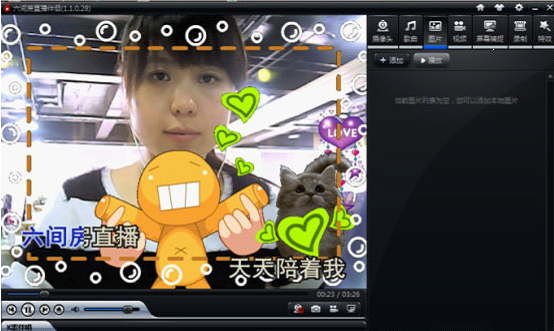 六間房視頻伴侶擁有兩個(gè)主題背景:黑色炫動(dòng)和清新藍(lán)色,如果用戶對(duì)此略感單調(diào),還可以在圖片添加自己喜歡的圖片作為背景畫面,實(shí)現(xiàn)自定義美化屬于自己的個(gè)性視頻直播內(nèi)容。