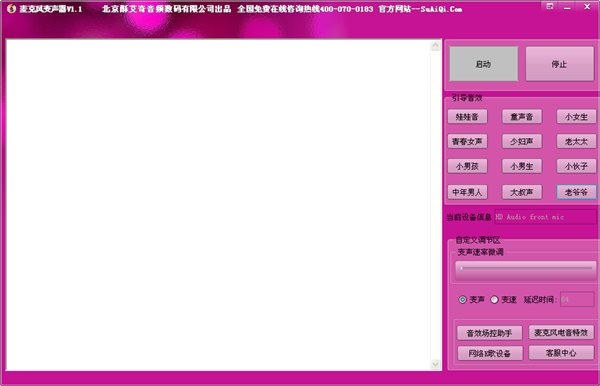 打開麥克風變聲器后,點擊“啟動”按鈕,再選取一個音效即可。還可以調整音效速率。