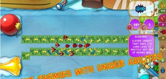 蟲子突擊安卓版是一款塔防游戲,蟲子們正在入侵你的家園,你需要在花園里種植各種植物抵御蟲子的入侵,擺放迷宮來延長蟲子的停留時間,40個關(guān)卡,9種敵人,6個不同的炮塔和升級。