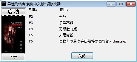 異型終結(jié)者:復(fù)仇修改器是同名游戲異型終結(jié)者:復(fù)仇的輔助工具,其中添加了無敵、子彈不減等功能,讓你瞬間的強(qiáng)大起來,越戰(zhàn)越勇,體驗(yàn)的更刺激哦,需要的朋友拿走把