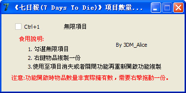 七日殺項(xiàng)目數(shù)量修改器是同名游戲七日殺的輔助工具,可修改物品數(shù)量,讓你在玩這款生存游戲時(shí)候不用再為物品擔(dān)心而可以專心對(duì)付喪尸了。