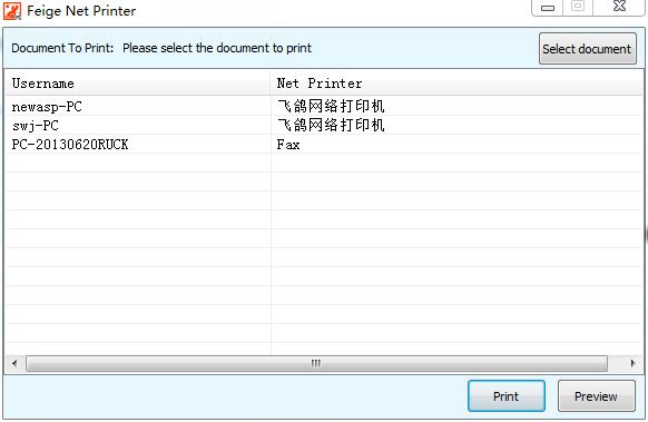 1. 啟動(dòng)軟件后,飛鴿網(wǎng)絡(luò)打印機(jī)會(huì)自動(dòng)掃描當(dāng)前局域網(wǎng)內(nèi)已經(jīng)連接的物理打印機(jī)及對(duì)應(yīng)的飛鴿用戶姓名