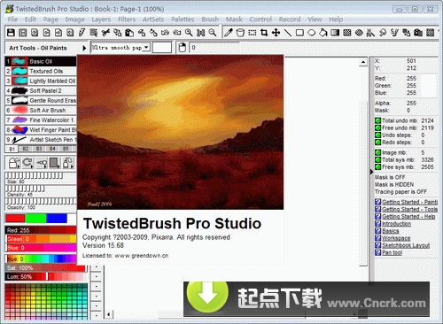 Pixarra TwistedBrush V19.09 英文綠色特別版 TwistedBrush是一款數(shù)字圖像軟件,它擁有一個最通用和強大的畫刷引擎,其中包含了 超過1500個的畫刷,層,現(xiàn)實媒體,照片復(fù)制,描摹圖,遮照,粒子,過濾器,腳本記錄,腳本到AVI,畫板支持,畫刷類型,樣式,紋理,更多完整的掃描支持。.