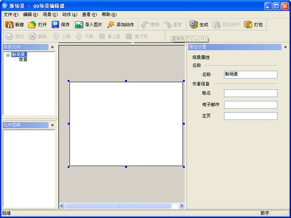 QQ場景編輯器界面親切、友好,所見即所得編輯環(huán)境,輕松完成QQ場景的整個制作過程, 包括背景圖片的導入、設置以及場景動作的設計、實現(xiàn)等。此外還提供了動作預覽,可以很方便的隨時查看動作效果。
