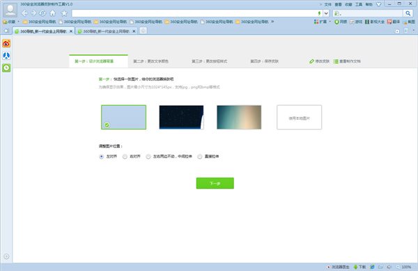 360安全瀏覽器皮膚制作工具可以讓用戶自己DIY瀏覽器皮膚,使用簡單方便。
