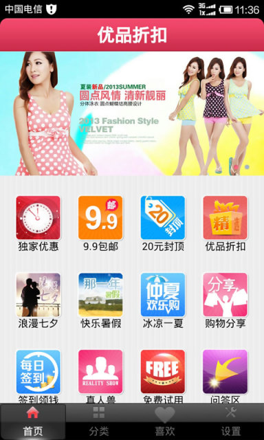1、超值折扣大匯集, 限時秒殺、限量搶購、9.9元包郵、優(yōu)惠促銷等活動實時更新。2、專享折扣價格,折扣商品均由工作人員招募而來,獨家僅有,折扣只為您專享。