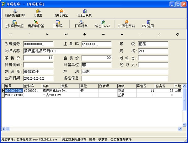 海宏條碼打印軟件是一款綠色免費(fèi)軟件,支持二維碼和普通條碼打印。可以對(duì)商品物價(jià)簽及條碼標(biāo)簽進(jìn)行更改打印,還可以輸出excel,非常實(shí)用方便。