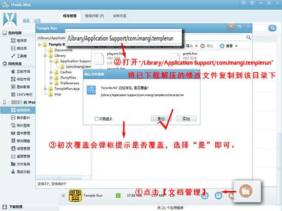 玩正版游戲碰到內(nèi)購(gòu),這世上有一種東西叫修改存檔,打開iTools應(yīng)用程序,點(diǎn)擊“文檔管理”,直接覆蓋游戲存檔文件,無限金幣鉆石任你high,輕松通關(guān)不是夢(mèng)!