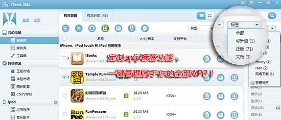 多人共用一臺(tái)電腦,本地程序很多很雜怎么一鍵管理?在iTools程序庫(kù)里面的定制app標(biāo)簽功能,讓你一鍵管理屬于你的全部APP。
