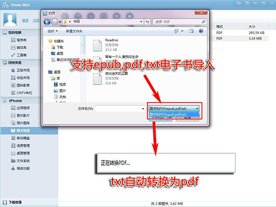 點(diǎn)擊【圖書管理】,把電子書直接拖入iTools界面,iTools可以直接把txt轉(zhuǎn)換為PDF。