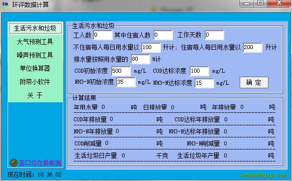 環(huán)評數(shù)據(jù)計(jì)算是一款環(huán)境評價(jià)分析軟件,包含生活污水和垃圾、大氣預(yù)測工具、噪聲預(yù)測工具、單位換算器以及附帶的一些小軟件。將數(shù)值填入指定區(qū)域即可進(jìn)行自動(dòng)計(jì)算。
