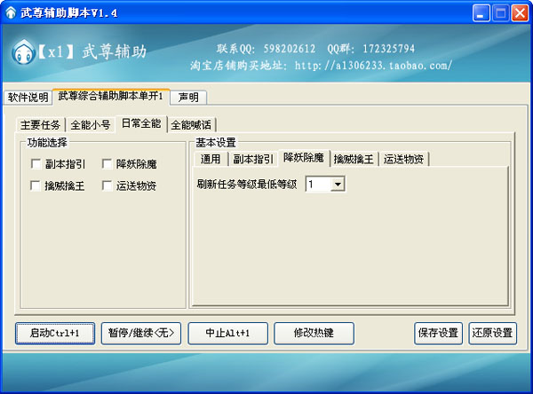 全能小號(hào)、日常全能(副本指引、降妖除魔、擒賊擒王、運(yùn)送物資)、全能喊話