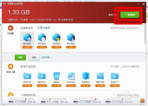 4.單擊“一鍵清理”按鈕