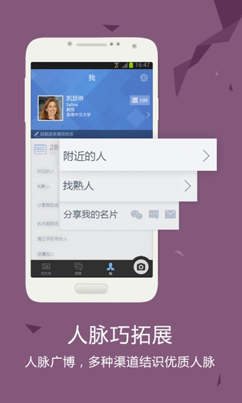 -類似微信的語音聊天、周邊的人功能,不只是名片管理,還可以溝通聯(lián)絡(luò)了。