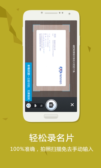 經(jīng)緯名片通是人人網(wǎng)旗下經(jīng)緯網(wǎng)出品的名片識(shí)別及商務(wù)社交工具,自推出后深得用戶喜愛,長期在app store同類產(chǎn)品中排名第一。曾經(jīng),那些夜以繼日的忙碌 創(chuàng)造展現(xiàn)自我的職業(yè)舞臺(tái) 良好的人脈關(guān)系助我成功 成功背后那些不為人知的糾結(jié) 因?yàn)橛辛说昧χ侄鴱娜?貼身秘書還是這樣的好【軟件特點(diǎn)】