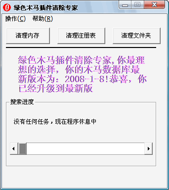 它有2個(gè)特點(diǎn): 一清除范圍大,它可以清除目前市面上幾乎所有的木馬和插件,并且自動(dòng)更新! 二軟件本身是綠色的,占用內(nèi)存最少,操作最簡便!
