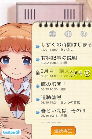 雫的日常安卓版內(nèi)置了獨(dú)特的聲音推送和人機(jī)互動(dòng)機(jī)制,點(diǎn)擊軟件右下角凸出的書(shū)簽,會(huì)彈出可播放的音聲素材列表,點(diǎn)擊任意話題后軟件會(huì)自動(dòng)播放.更重要的是,這些話題基本每天都有更新.所以不怕軟件會(huì)被玩膩.而大多數(shù)話題還附帶有類似GALGAME的文字選項(xiàng),會(huì)在所選話題播放完畢后出現(xiàn),選擇不同的選項(xiàng),Shizuku會(huì)反應(yīng)給你不一樣的回饋,當(dāng)然了.是附帶語(yǔ)音的回饋。一些需要注意的問(wèn)題:請(qǐng)不要關(guān)閉軟件的網(wǎng)絡(luò)連接權(quán)限,不然你就只能聽(tīng)到軟件自帶的幾句聲音了.如果你打開(kāi)軟件后發(fā)現(xiàn)話題列表是空的,請(qǐng)點(diǎn)擊話題頁(yè)上方的刷新按鈕,對(duì)了,使用軟件時(shí)請(qǐng)保持高速網(wǎng)絡(luò),如3/4G或WIFI網(wǎng)絡(luò).幾十秒后(或許更久,耐心..耐心..)列表會(huì)被刷新,你就可以看到話題了.點(diǎn)擊想聽(tīng)的話題后軟件會(huì)自動(dòng)開(kāi)始下載聲音數(shù)據(jù),每段聲音平均估約3M左右.下載完畢后Shizuku就會(huì)自己開(kāi)始說(shuō)話了.至于一些帶鎖的話題,是需要Google Play付費(fèi)的,不過(guò)開(kāi)發(fā)商很良心,絕大多數(shù)話題都是免費(fèi)的.并且每日更新。