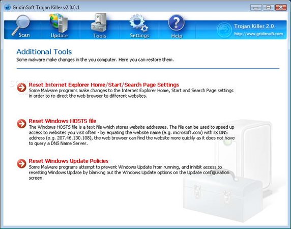 Gridinsoft Trojan Killer木馬克星是專門來禁用/刪除沒有用戶不必手動編輯系統(tǒng)文件或注冊表的惡意軟件。該方案還刪除一些惡意軟件進行了一些標準的防病毒掃描器忽略額外的系統(tǒng)修改。【軟件特點】