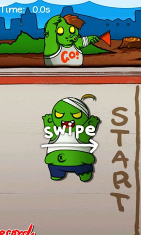 1. 點(diǎn)擊開始按鈕.2. 在屏幕上滑動(dòng)并且使僵尸快速移動(dòng).